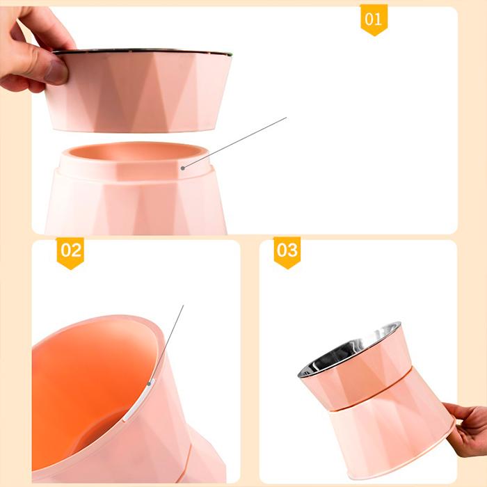 Comedero con base elevada para proteger las vértebras cervicales de tu michi. Con un diseño separado de tazones individuales para facilitarle la digestión a los cachorros. Uso apilado cuando crecen, 14 cm de diámetro grande, rechaza la barbilla negra de las mascotas, diseño de boca de 4,5 cm de profundidad para evitar derrames de alimentos. Para gato y perrito.