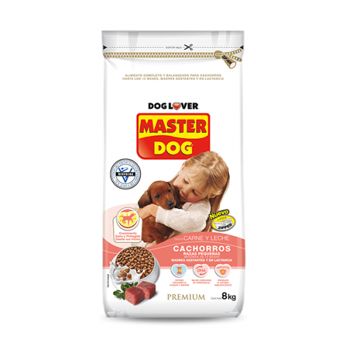 Porque tu cachorro necesita el mejor alimento desde sus inicios, incorporamos más proteínas para un mejor desarrollo muscular y más materia grasa para entregarle toda la energía necesaria en sus juegos. Alimento completo y balanceado, recomendado para tu Master Dog Cachorro Raza Pequeña desde los 1,5 meses a los 12 meses de vida. Ahora con más proteínas para un mejor desarrollo muscular, bocados más pequeños y más materia grasa para entregarle toda la energía que necesita en sus juegos. Además incorpora DHA lo que favorece su desarrollo cerebral y correcto funcionamiento de la visión, y prebióticos que fortalecen su inmunidad.